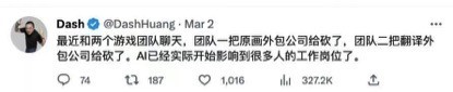 “AI曾经现实起头影响到良多人的工做岗亭了。确实看到良多逛戏公司的2D部分裁了不少人,就像每一次工业和手艺改革,