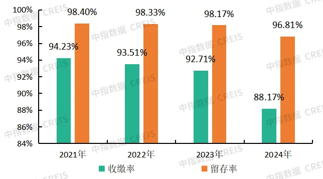 导致收缴率和留存率下降的外部缘由次要有:处所集中出台或沉申物业费指点价政策,百强企业积极拓展非室第项目,同时。